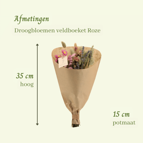 Droogbloemen veldboeket Roze - ↨35cm - Ø15cm