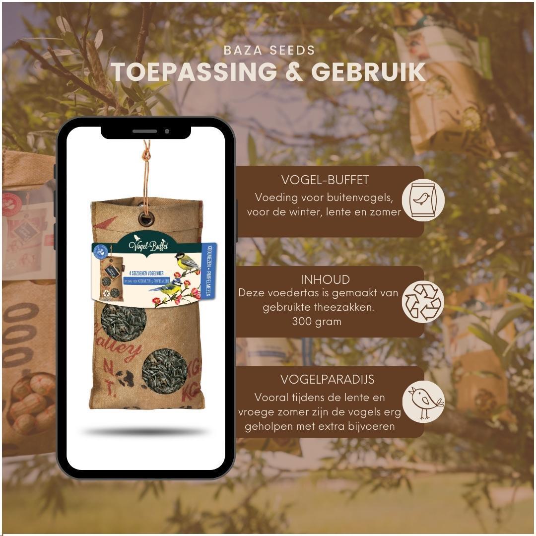 De zak is ontworpen voor eenvoudig gebruik, zodat je snel een handig voederstation kunt creëren. Hang de zak op in je tuin en bied de vogels een veilige plek om te genieten van hun maaltijd. Het is een leuke en gemakkelijke manier om de natuur dichterbij te halen!