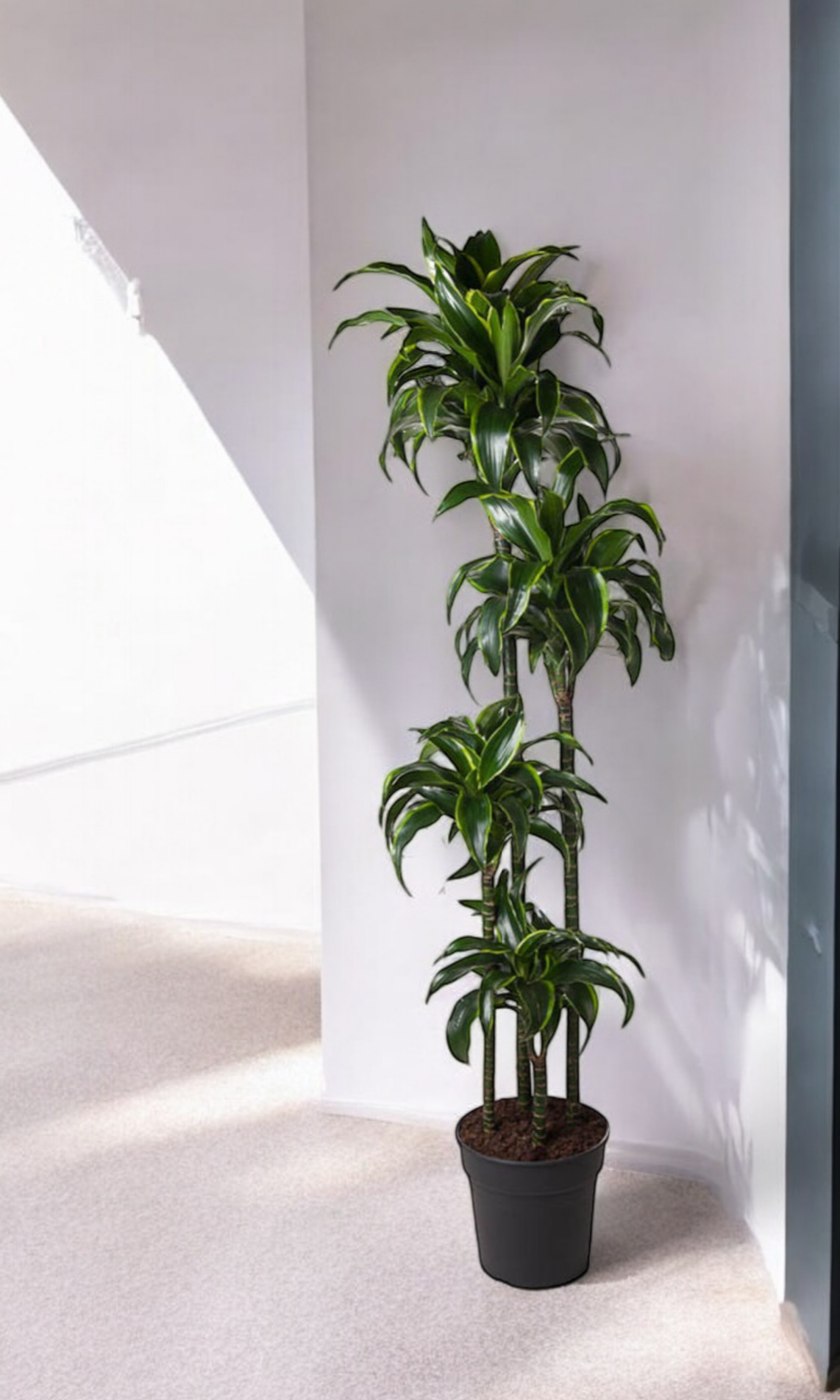 De Dracaena Dorado gedijt in diverse lichtomstandigheden, van helder indirect licht tot schaduw. Dit maakt hem ideaal voor verschillende ruimtes in huis, zoals woonkamers, kantoren en slaapkamers.