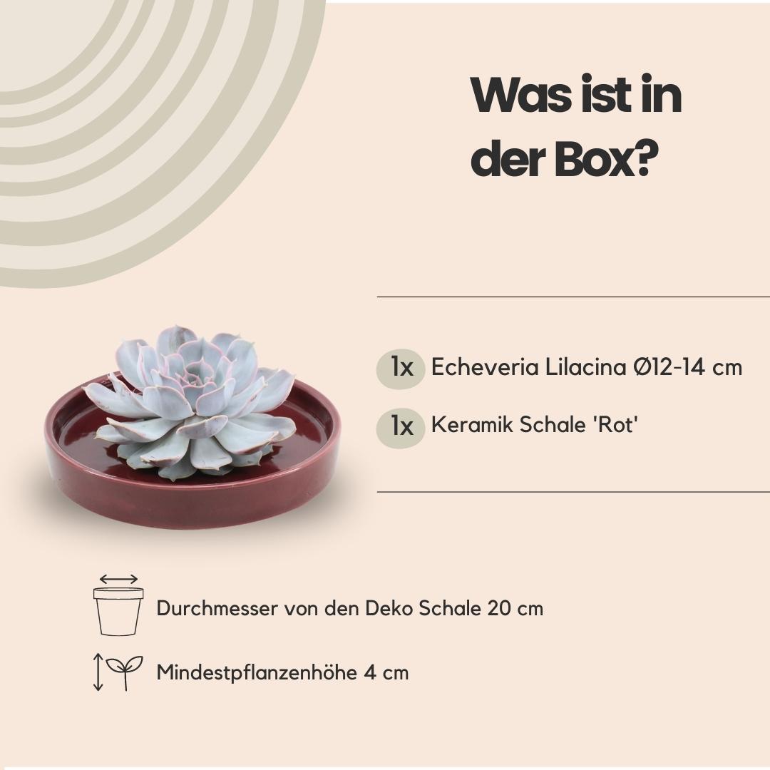 Succulent Echeveria Lilacina in schaal rood - ↨5cm - Ø20cm