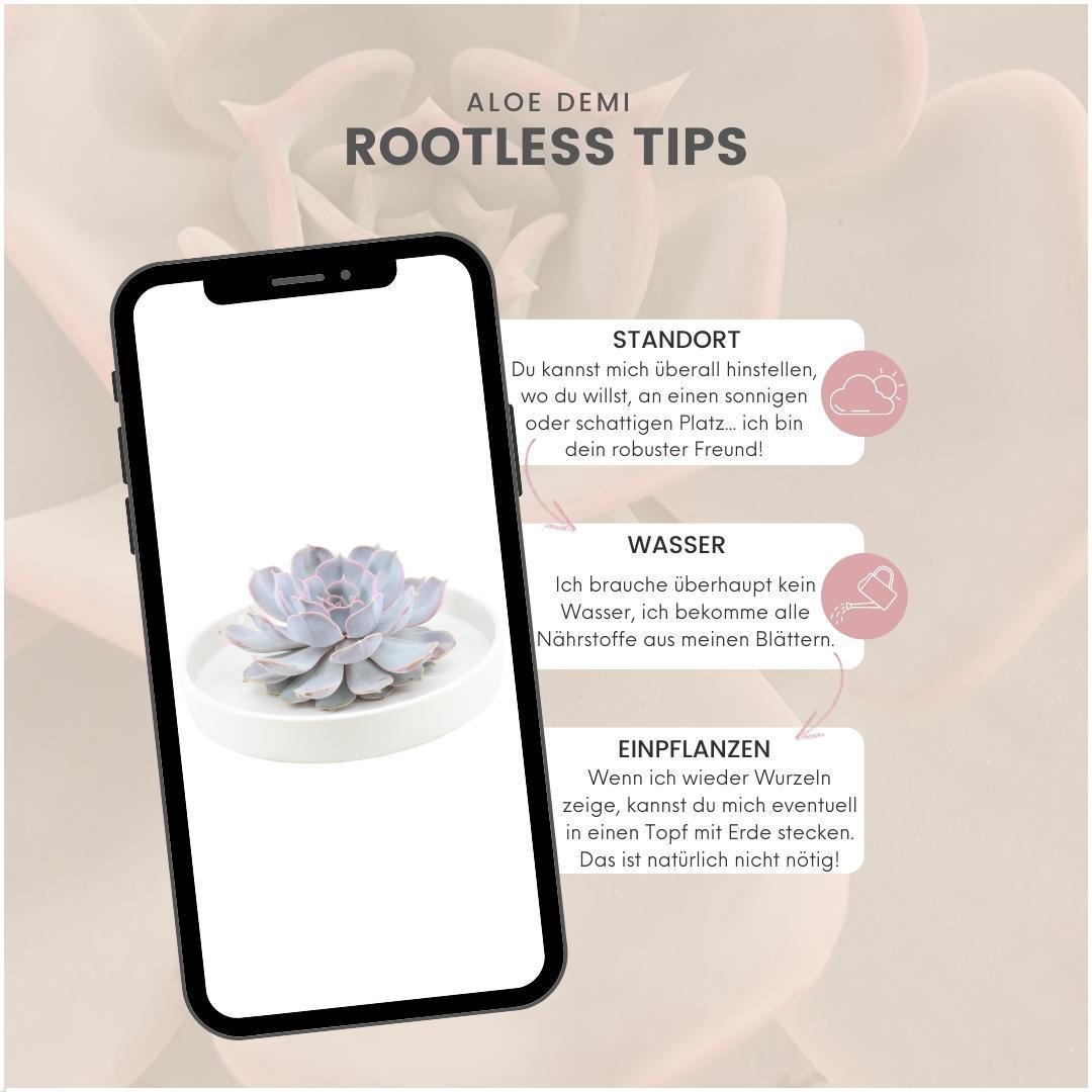 ROOTLESS vetplanten zijn bijzondere succulenten zonder wortels. Zoals de naam al aangeeft, bestaat een ROOTLESS succulent uitsluitend uit een rozet, waarin vocht wordt opgeslagen. Dit betekent dat je je geen zorgen hoeft te maken over te veel of te weinig water!
